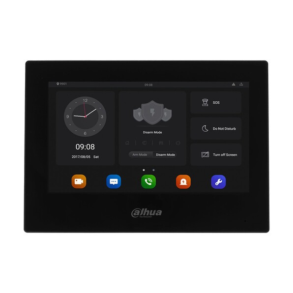 1024x600 разрешение, ёмкостной сенсорный экран; тревожные входы / выходы 8/1; RS485; LAN; поддержка micro-SD до 256Гб; Возможность просмотра IP видеокамер; Питание: DC 12В/PoE(802.3af); Габаритные размеры: 190 мм × 135 мм × 26 мм; Установка - на стену.